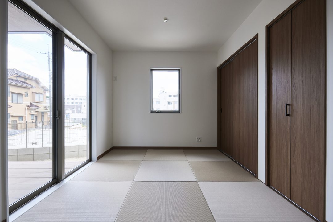 LDKからも和室からも出入りが可能な第二のリビングバルコニーが特徴的な八本松飯田B棟。