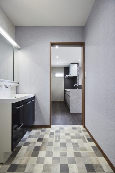 キッチンから洗面、洗面からお風呂へと一直線の家事動線。