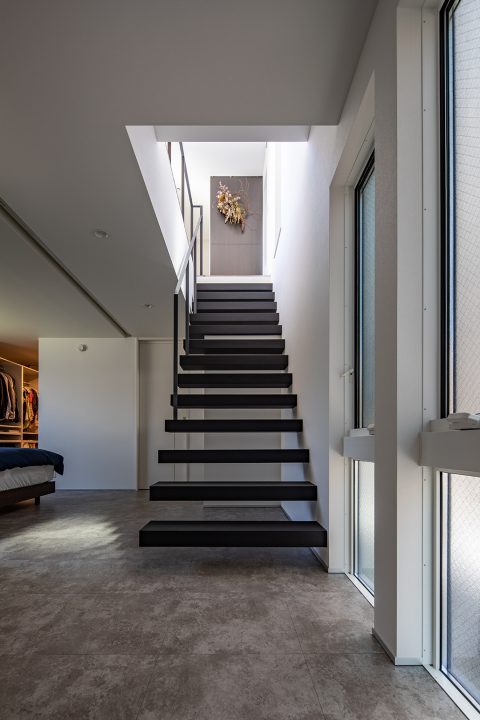 1階はプライベートスペースで、寝室とウォークスルークローゼット、浴室とランドリールームを置いた。