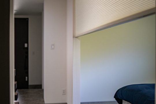 将来は個室にリフォームすることも考えて、寝室に壁やドアをつけなかった。