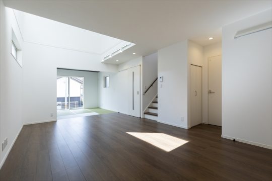 18.5帖の広々したLDKと上部は大きな吹き抜け設置、さらにLDKから続き間で4.5帖の